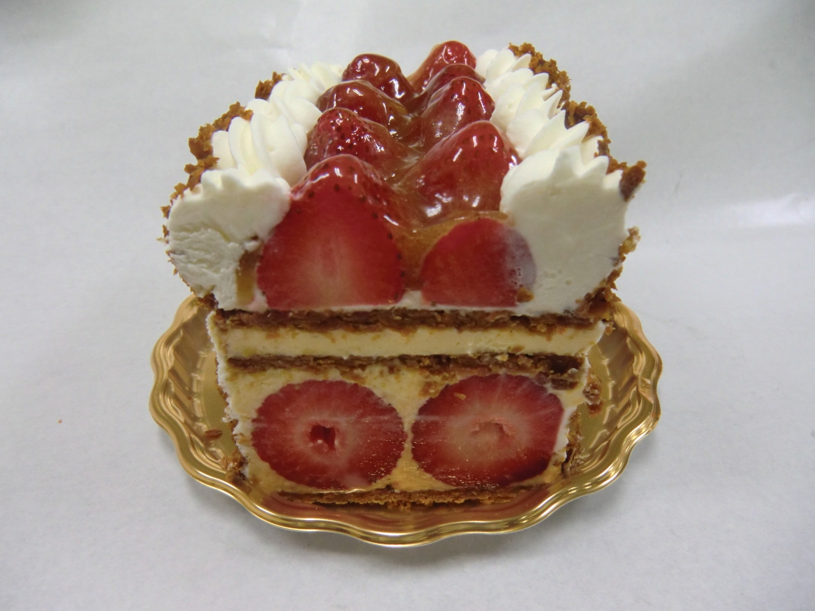 カスタードとバタークリームを合わせた特製クリームを大きな苺とサクサクパイでサンドしました。4号2650円 5号3500円円6号 4400円 この商品は、前日予約となっております。当日予約は出来ません。 尚、夏季の間はお休みさせて頂きます。